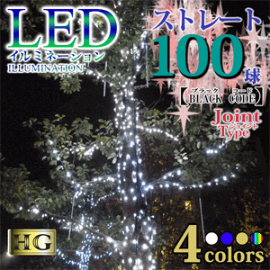 商品情報:【HG】100球 黒配線 (ハイグレードLEDイルミネーション)イルミネーションコードのみ サンケイ・ビズの「HGハイグレードLEDイルミネーション」 100球ストレートのジョイントタイプ。